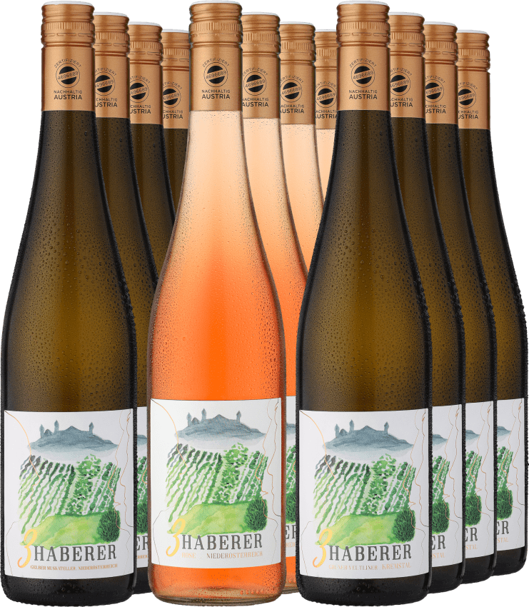 Mit dem »3 Haberer«-Paket holen Sie sich österreichische Weinkompetenz im Dreierpack nach Hause – direkt vom Weingut Müller aus dem schönen Krustetten am Göttweiger Berg. Die drei Pfundskerle (bzw. »Haberer«, wie man in Österreich sagt) stehen für ehrlichen, frischen Weingenuss. Modern gemacht, mit viel Herz und Bodenhaftung. In diesem Probierpaket bekommen Sie je vier Flaschen der drei Hausfavoriten: Grüner Veltliner, Gelber Muskateller und Rosé.