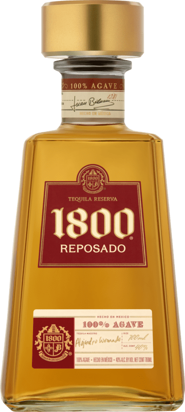 Die Geheimwaffe in Margaritas und hochkarätigen Cocktails stellt der 1800 Reposado Tequila dar. 100% Agave Tequila reift für mindestens sechs Monate in Fässern aus amerikanischer und französischer Weißeiche, bevor er vollendet in die Flasche gefüllt wird. Er überzeugt mit einem süßlichen Abgang und zarten Gewürzen.