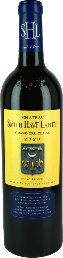 »Château Smith Haut Lafitte spiegelt den strahlenden Charakter der letzten Jahre perfekt wider. Das Etikett hat dabei eine kleine, aber feine Ergänzung erfahren. Es erzählt vom Besuch König Charles III., der die Ernte geadelt haben soll. Die tiefdunkle rubinrote Farbe mit violetten Reflexen mutet jedenfalls majestätisch an. Genau wie das einladende Bukett mit dunklen Waldbeernoten und reifen Kirschen. Der saftige Kern mit tiefer Brombeerfrucht und reifen Tanninen wird umspielt von Nuancen von Vanille, zarten Noten von Karamell und Röstaromen. Deutlich zeigt sich die Kraft des Cabernet Sauvignon, der mit 70 Prozent den Charakter dieses SHL prägt. 23 Prozent Merlot, 6 Cabernet Franc und 1 Petit Verdot ergänzen die Assemblage. Die Reifung erfolgte zu 60 Prozent in neuer Eiche.«