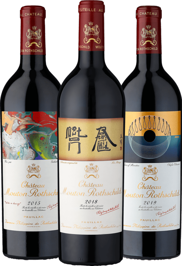 »Mit dieser exklusiven Vertikale erleben Sie drei außergewöhnliche Jahrgänge einer wahren Bordeaux-Legende. Die Jahre 2015, 2018 und 2019 zählen zu den größten und begehrtesten Jahrgängen der vergangenen zwei Jahrzehnte. Jeder dieser Weine steht für höchste Präzision, Tiefe und Ausdruckskraft. Gemeinsam bilden sie ein beeindruckendes Zeugnis zeitloser Qualität und großer Weinbaukunst. Und apropos Kunst: Jeder Jahrgang trägt das Werk eines berühmten Künstlers auf dem Etikett – typisch Mouton.«
