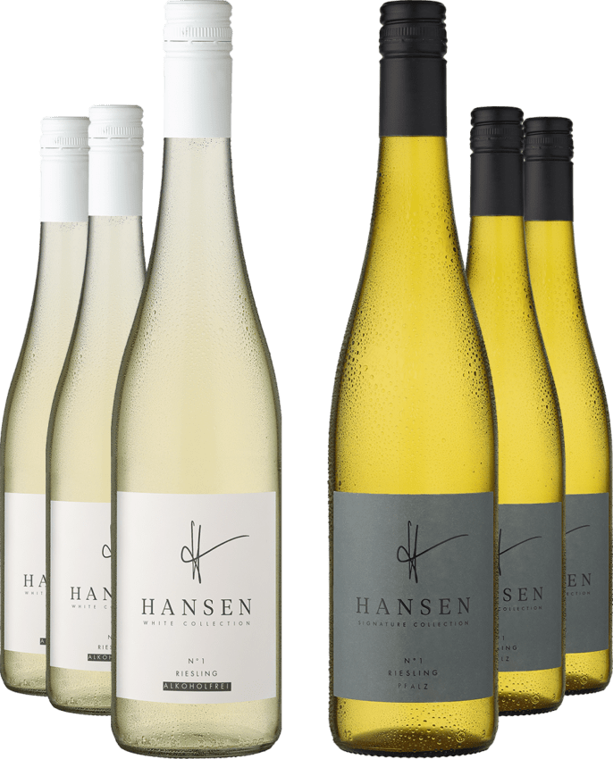 Mit Freunden und Familie anstoßen, ohne dass jemand auf Genuss verzichten muss? Dieses Probierpaket macht es möglich! Perfekt für gesellige Abende, Feiertage oder Dinnerpartys vereint es die besten Seiten des Rieslings – ob klassisch oder alkoholfrei. Dabei sind beide Varianten, der HANSEN »Signature Collection« N°1 Riesling und der HANSEN »White Collection« N°1 Riesling Alkoholfrei, unverschämt lecker.