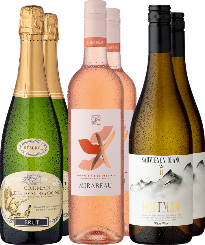 Wenn Johannes von »Johannes trinkt Wein« gemeinsam mit Ludwig von Kapff ein Probierpaket zusammenstellt, dürfen Sie sich auf Weine freuen, die mehr können als nur gut schmecken. Dieses 6er-Set bietet eine stilistisch vielfältige Auswahl für wirklich alle Gelegenheiten: ein eleganter Crémant aus dem Burgund, ein frischer, exotisch-fruchtiger Sauvignon Blanc aus Spanien und ein duftiger Rosé aus der Provence.