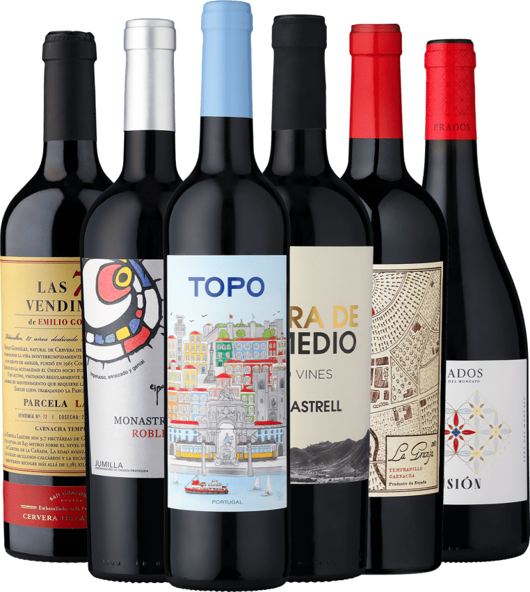 Während Sie in würzige Albóndigas dippen, genießen Sie sechs kraftvolle Rotweine aus Spanien und Portugal, die mit Noten von dunklen Beeren und feinen Gewürzen begeistern. Die Weine sind wie geschaffen, um mit herzhaften, leicht rauchigen Tapas zu harmonieren. Ein fruchtiger Tempranillo passt wunderbar zu schmelzendem Manchego, während ein sanfter Garnacha Ihren Gaumen auf die feurigen Patatas Bravas vorbereitet. Ob gegrillte Paprika, würzige Chorizo oder marinierte Oliven – diese Weine sind die perfekten Begleiter für jeden Tapas-Teller und runden den Abend kulinarisch gekonnt ab. Gleich bestellen!