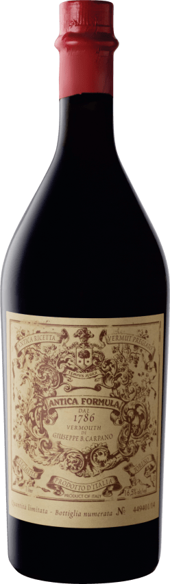 Antica Formula ist der italienische Vermouth par excellence und gilt als der erste Bitter-Apéritif der Geschichte. Das Rezept von 1786 dient auch heute noch zur Herstellung des Antica Formula. Dazu werden selektierte Moscato Weine aus dem Piemont mit Weißweinen aus Süditalien verwendet und einer Vielzahl von ausgewählten Gebirgskräutern angereichert.