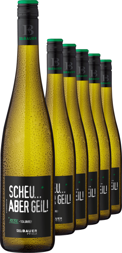 Dass die Rebsorte Scheurebe gar nicht so scheu sondern eigentlich ganz geil ist zeigt der 2019er »Scheu aber geil« von den Weinmachern Alexander und Martin Bauer. Mit unserem exklusiven Vorratspaket können Sie sich auf genussvolle, aber vor allem 'geile' Stunden freuen!