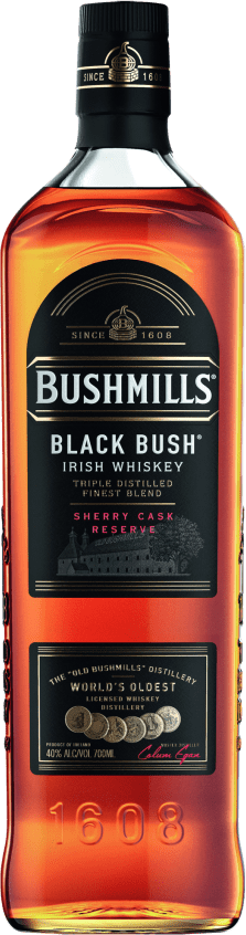 Der Bushmills Black Bush Irish Whiskey kombiniert eine große Menge in Oloroso Fässern gereifte Malt Whiskey zusammen mit einer kleineren süßeren Menge Grain Whiskey. Dieses einzigartige Rezept lässt den Black Bush zu einem Whiskey heranreifen, der reichhaltig an fruchtigen Noten und einem intensiven Charakter ist. Gleichzeitig besticht seine sanfte Note. Der Whiskey lebt vom Volumen und den dunklen Sherryfässern.