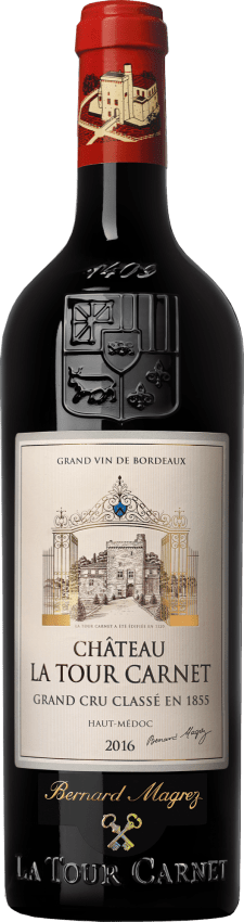 Château La Tour Carnet, ein 4ème Grand Cru Classé von 1855, ist eines der ältesten und geschichtsträchtigsten Weingüter im Médoc. Die Ursprünge des Châteaus reichen bis ins Mittelalter zurück, geprägt von seiner ikonischen Turmburg und dem Namen des Ritters Jean Carnet. Seit der Übernahme durch Bernard Magrez im Jahr 1999 erlebte das Weingut eine umfassende Renaissance: Weinberge, Keller und Technik wurden grundlegend modernisiert. Heute stehen rund 73 Hektar Rebfläche – vorwiegend mit Merlot und Cabernet Sauvignon – auf kies- und tonhaltigen Böden in Saint-Laurent-Médoc, nahe Saint-Julien. Die Parzellen werden einzeln vinifiziert und rund 16–18 Monate in Barriques (teils neu) ausgebaut – mit dem Ziel, Eleganz, Struktur und Ausdruckskraft zu vereinen.Der Jahrgang 2016 gehört zu den besten des Jahrzehnts in Bordeaux. Ein kühler Frühling, gefolgt von einem idealen Spätsommer, ermöglichte eine lange, gleichmäßige Reife der Trauben – mit perfekter Balance aus Frucht, Struktur und Frische. La Tour Carnet vinifizierte diesen Jahrgang mit einem Merlot-betonten Blend, ergänzt durch Cabernet Sauvignon, Petit Verdot und Cabernet Franc. Die Tannine präsentieren sich im 2016er seidig und dennoch präsent, die Frucht opulent, aber nie überladen. Die Aromatik entfaltet sich mit klassischer Tiefe: schwarze Kirsche, Brombeere, Zedernholz und Tabak, gepaart mit feinen Gewürznoten und dezentem Röstholz. Die Struktur ist klar gegliedert, die Textur geschmeidig, mit einer lebendigen Säure, die dem Wein Frische und Langlebigkeit verleiht.Bereits jetzt trinkreif, zeigt sich der 2016er La Tour Carnet auf dem Höhepunkt zwischen jugendlicher Frucht und beginnender Reife. Mit seiner klassischen Médoc-Stilistik und modernem Feinschliff besitzt er das Potenzial, sich über weitere 15 bis 20 Jahre harmonisch zu entwickeln. Besonders schön zur Geltung kommt er zu Lammrücken, gereiftem Rind, Wild oder gereiftem Hartkäse – ein Médoc mit Charakter, Tiefgang und charmantem Auftritt.Wichtiger Hinweis: Sie sind im Begriff, einen außergewöhnlichen Wein eines der besten Weingüter unserer Zeit zu bestellen. Der Versand erfolgt direkt vom Weingut und kann sich gegenüber unseren normalen Lieferzeiten verlängern.