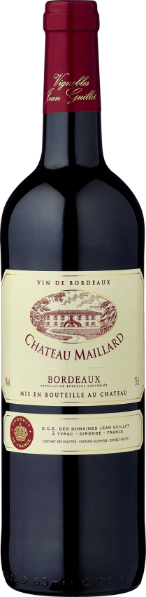 Diese trockene Rotweincuvée stammt aus Bordeaux vom Château Maillard. Sie ist eine harmonische Komposition aus den klassischen Bordeaux-Rebsorten Cabernet Franc, Cabernet Sauvignon und Merlot. Beeindruckend für das junge Alter des Weins ist die intensive Aromatik und der mollige Körper. Die Stilistik ist dabei typisch für die Bordelaiser Art: Kräftige Noten von Cassis und Kirsche vereinen sich am Gaumen mit feinkörnigem Tannin. Dieser Wein passt gut zu deftigen Gerichten, wie gebratenem Wild mit dunkler Soße oder auch zu kräftigem Käse.