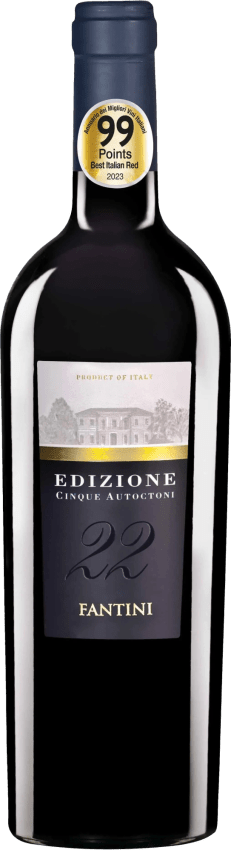 Als Aushängeschild des Weinguts repräsentiert der Edizione Cinque Autoctoni nicht nur die Philosophie von Fantini, sondern auch die Vielseitigkeit des italienischen Weinbaus. Die handverlesenen Trauben durchlaufen einen sorgfältigen Reifeprozess. 13 Monate lagern sie in französischen und amerikanischen Barriques. Im Ergebnis zeigt sich ein tief rubinroter Wein mit Aromen von reifen Kirschen, dunklen Beeren und Gewürzen sowie dem harmonischen, samtigen Geschmack, der große Weine auszeichnet und lange nachhallt.