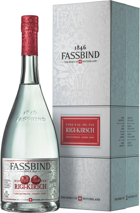 Der Fassbind Les Eaux de Vie Kirsch ist der älteste, traditionsreichste Edelbrand aus der Edelbrennerei Fassbind. Heute wird dieser Kirsch-Brand nach einer neuen, eigens vom gegenwärtigen Brennmeister entwickelten Rezeptur destilliert. Die Kirschen für die edle Spirituose werden nach strengen Qualitätskriterien ausgelesen und stammen ausschließlich aus der Zentralschweiz. Destilliert werden die Früchte nach dem Sogenannten Gegenstromverfahren und dann anschließend für mindestens 12 Monate gelagert und vom Brennmeister cuviert.
