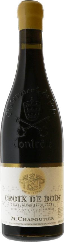 Normalerweise sind die Weine aus dieser Appellation extrem vollmundig, intensiv und schwer. Doch Kultwinzer Michel Chapoutier geht mit seinem Wein einen anderen Weg. Statt auf einen komplexen Verschnitt mehrerer roter Rebsorten zu setzen, lässt er nur eine einzige Traube die Hauptrolle spielen: Grenache. Und diese Trauben stammen nicht von den weit verstreuten Weinbergen, wie es üblich ist, sondern ausschließlich von der Einzellage Croix de Bois. Hier wurzeln die alten Grenache-Reben tief in sandigem Tonboden, der von großen Kieselsteinen bedeckt ist.