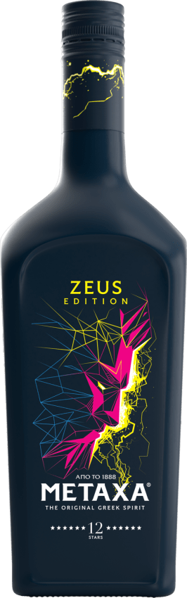 Der Metaxa 12 Sterne »Zeus« in der Limited Edition verbindet den klassischen Geschmack des 12-Sterne-Metaxa mit einem spektakulären neuen Look, inspiriert vom mächtigen Gott Zeus. Die dunkelblaue Flasche mit Neon-Highlights und einem modernen Zeus-Porträt ist nicht nur ein Blickfang, sondern leuchtet im Dunkeln, wenn sie von UV-Licht angestrahlt wird. Diese limitierte Edition bringt Zeus in zeitgemäßer Form zurück und macht die Flasche zu einem Must-have für jede Bar – und zu einem außergewöhnlichen Geschenk.