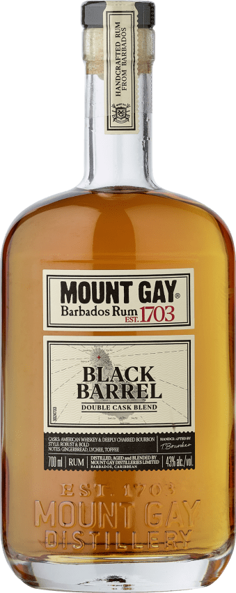 Der Mount Gay »Black Barrel« Rum stammt von der sagenumwobenen Insel Barbados und wurde zum 310-jährigen Jubiläum der Marke eingeführt. Die dunkle, kupfer-goldene und perfekt gereifte Vermählung von auserlesenen Double Pot Still Destillaten wird in ausgekohlten Bourbon Eichenfässern veredelt. So entsteht ein würziges Bukett, das umspielt von Karamell und kandierter Mandel auch die feinen Noten von Vanille, Limone und Orange in sich trägt. Der pfeffrige Geschmack wird begleitet von Ananas, reifer Pflaume, Toffee und rauchigen Holztönen. Im Abgang gestaltet sich der Black Barrel Blend intensiv und kräftig.