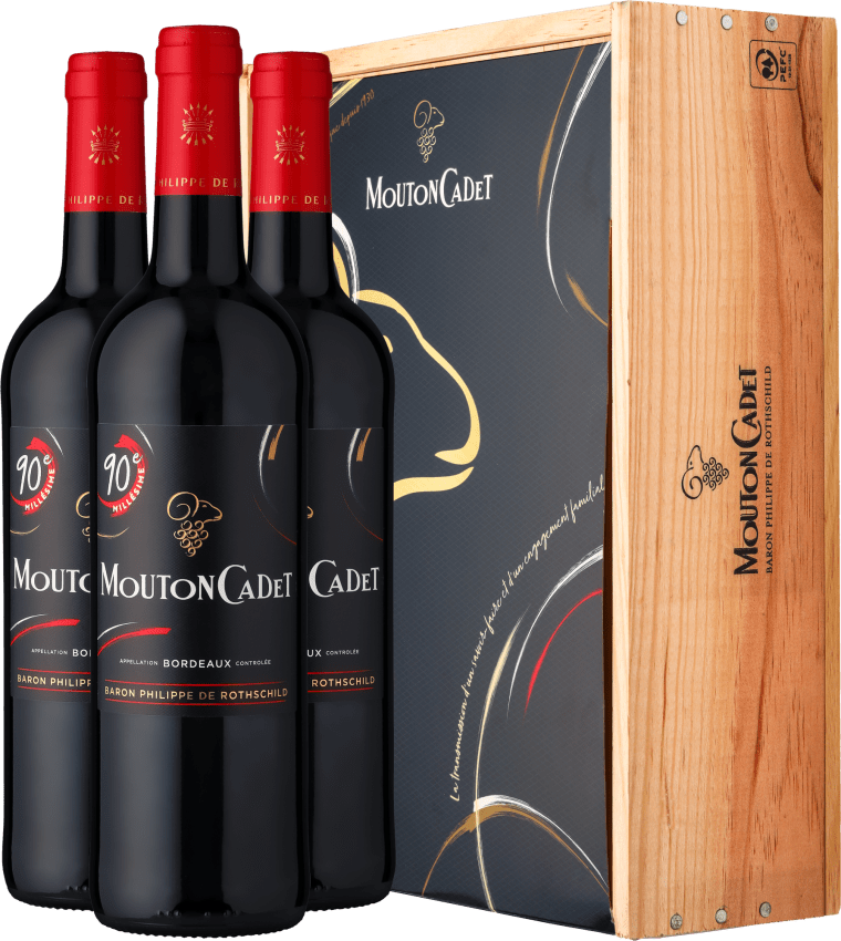 2020 Mouton Cadet Rouge >90e Millésime< – 3 Flaschen in der Holzkiste