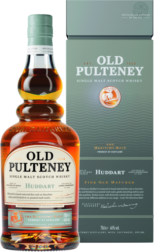 Der Old Pulteney Huddart Single Malt Scotch Whisky stammt aus den Northern Highlands in Schottland. Dieses Exemplar aus der Brennerei Old Pulteney ist benannt nach der Straße in der sich die Produktionsstätte befindet. Es gibt zwei Besonderheiten, welche den Whisky auszeichnen und ihn für das Prädikat »Single-Malt-Whisky« qualifizieren: zum Einen wird er von einer einzigen Brennerei hergestellt. Dies bedeutet, er wird nicht aus mehreren Whiskysorten verschnitten. Und zum Anderen ist die Getreideart ausschließlich gemälzte Gerste. Diese zwei Aspekte fungieren als Qualitätsversprechen.