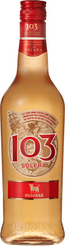 Mit 103 bietet Osborne einen besonders hellen und weichen Tropfen, der über 12 Monate nach dem Solera-Verfahren in Sherry-Eichenholzfässern reift. Sein animierender Duft und das fein abgestimmte Aroma machen ihn zur perfekten Basis für erfrischende Longdrinks und raffinierte Cocktails. Damit spricht Osborne 103 auch die weiblichen Fans an. Osborne 103 eignet sich perfekt zum Mixen. Keine Bar in Spanien, in der 103 nicht zuhause ist. Keine Bodega, in der er nicht die Sinne der Gäste betört. Osborne 103 macht Longdrinks und Cocktails zum unvergesslichen Erlebnis. Salud!