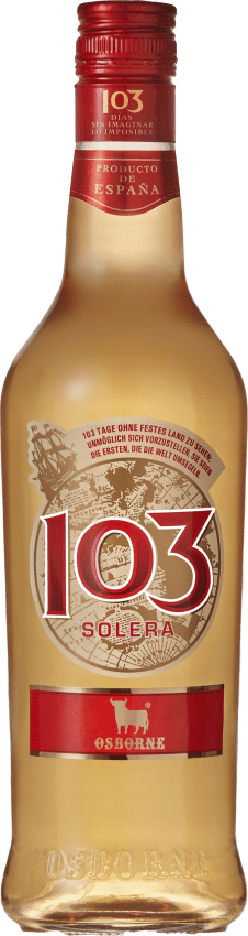 Mit 103 bietet Osborne einen besonders hellen und weichen Tropfen, der über 12 Monate nach dem Solera-Verfahren in Sherry-Eichenholzfässern reift. Sein animierender Duft und das fein abgestimmte Aroma machen ihn zur perfekten Basis für erfrischende Longdrinks und raffinierte Cocktails. Damit spricht Osborne 103 auch die weiblichen Fans an. Osborne 103 eignet sich perfekt zum Mixen. Keine Bar in Spanien, in der 103 nicht zuhause ist. Keine Bodega, in der er nicht die Sinne der Gäste betört. Osborne 103 macht Longdrinks und Cocktails zum unvergesslichen Erlebnis. Salud!