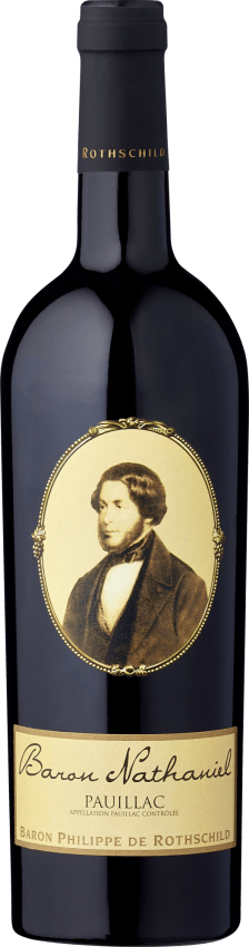 Rothschilds Baron Nathaniel kommt aus einer der namhaftesten und daher bekanntesten Weinregionen der Appellation Bordeaux, dem Pauillac. Das Gebiet im Herzen des Médoc, im Nordosten der Stadt Bordeaux trumpft aufgrund seiner erstaunlichen Bodenbeschaffenheit auf. Hier passen eine schottere, kieselige Oberfläche über einer tiefen, harten Bodenschicht perfekt zueinander. Die Wein-Reben profitieren durch die Böden im Pauillac von einer idealen Ent- und Bewässerung. Ihre tiefen Wurzeln in Verbindung mit der hohen Durchlässigkeit der Böden ermöglichen es den Rebstöcken Trockenheit sowie starken Regenfällen zu trotzen.Wie in anderen Wein-Regionen auch, hat Baron Philipe de Rothschild in Pauillac ein Netz von Partnerschaften zu einer Vielzahl von Winzern gesponnen. So kann sich das prestigeträchtige Haus Rothschild an Trauben von bester Qualität bedienen. Und dass Jahrgang für Jahrgang. Sehr sorgfältig wählten die Weinmaker von Baron Philippe de Rothschild die einzelnen Parzellen für ihren Rotwein Baron Nathaniel Pauillac aus. Die Eigenschaften dieser Weinberge müssen dabei immer mit denen der angebauten Rebsorte harmonieren. Um den äußerst hohen, fast schon peinlich detaillierten Ansprüchen Rothschilds zu genügen, und um dann letztlich für den Baron Nathaniel Pauillac geeignet zu sein, werden die Trauben das ganze Jahr über kontrolliert und überwacht.Der Rothschild Baron Nathaniel Pauillac ist ein französischer Rotwein aus den drei klassischen Bordeaux Rebsorten Cabernet Sauvignon, Cabernet Franc und Merlot. Cabernet Sauvignon stellt mit 43% den größten Anteil in dieser Cuvée und sorgt für ein unvergleichliches Aroma sowie eine Tannin-Struktur, die dem Wein Charakter und ebenfalls sein beachtliches Alterungspotenzial verleiht. Die 22% Cabernet Franc verleihen dem Wein wiederrum seine Raffinesse und der Anteil Merlot (35%) gibt ihm seine Geschmeidigkeit sowie Frucht.Im Glas zeigt sich Rothschilds Baron Nathaniel mit einem intensiven granatroten Farbton durchzogen von violetten Reflexen. Im Bukett machen sich dann verführerische Noten von schwarzen Johannisbeeren, Erdbeeren und Kirschen breit. Begleitet werden diese Fruchtnoten von einem Hauch Würze und einer Spur von Toast. Am Gaumen zeigen sich seine vollen aber weichen Tannine sowie komplexe Aromen von würziger Vanille sowie reifen schwarzen Früchten.