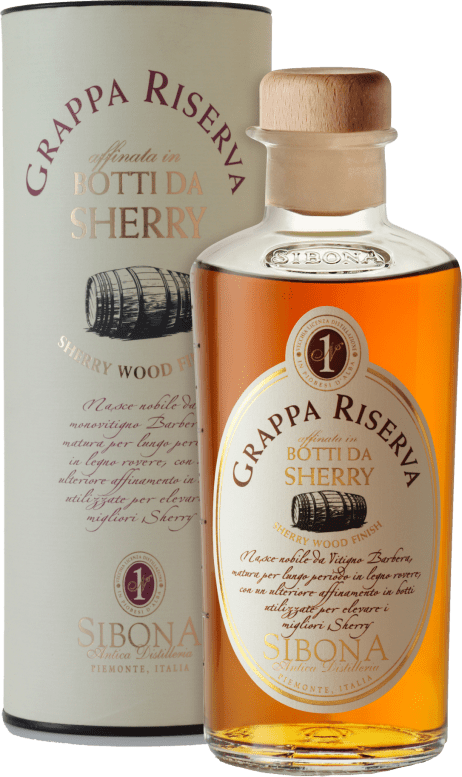 Dieser spezielle Grappa Riserva Botti da Sherry der Distelleria Sibona wird zunächst lange Zeit nach dem Brennen im Eichenfass ausgebaut und danach zwei Jahre in ehemalige Sherry-Fässern zum Reifen gelegt. Diese verleihen dem italienischen Grappa seine Bernsteinfarbe. In der Nase erscheint ein schmeichelnd elegantes Bouquet mit einer klaren Sherry-Note. Der raffinierte Geschmack zeigt ein Zusammenspiel von blumigen Noten und Sherrytönen.