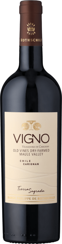 Der Tierra Sagrada »Vigno« Carignan stammt aus der D.O. Valle del Maule in Chile und wird von Baron Philippe de Rothschild erzeugt. Die Rebsorte Carignan gedeiht hier auf Granit geprägtem Boden an 37 bis 70 Jahre alten Buschreben, die ohne zusätzliche Bewässerung kultiviert werden. Nach der Maischegärung reift der Wein 14 Monate in gebrauchten französischen Barriquefässern.